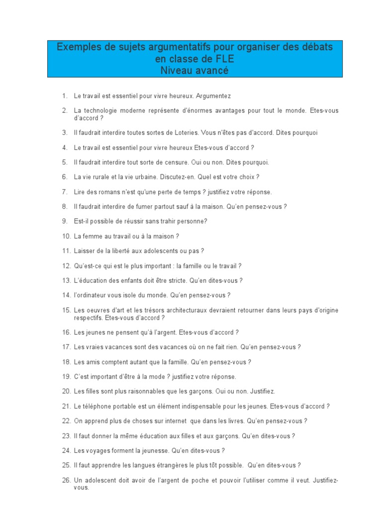 Sujets argumentatifs classe de francaise sujets sujet de debat - www.pinterest.com